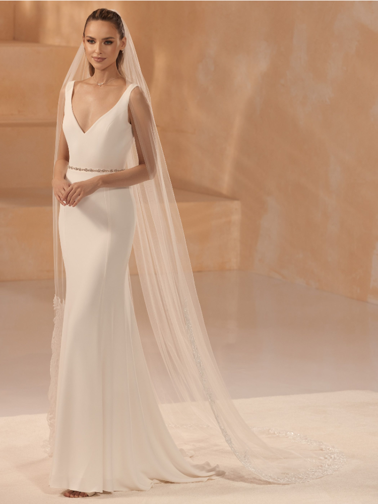 Ce voile élégant de Bianco Evento complétera votre look de mariée. Ce voile à une couche est fait de tulle doux avec un bord coupé en haut et un bord en dentelle en bas. Un peigne est attaché au voile, ce qui facilite la mise en place du voile dans les cheveux.