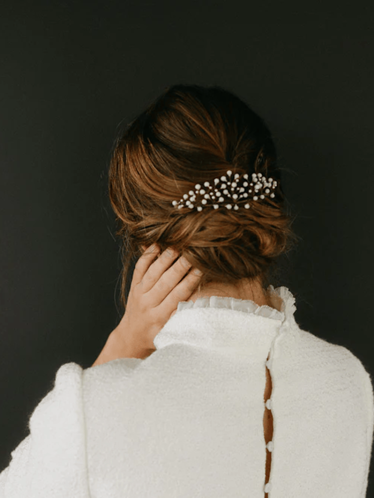 Le peigne à cheveux Abel de Lizeron est un accessoire capillaire léger et fait à la main, conçu pour se poser gracieusement sur votre chignon. Chaque élément en porcelaine est méticuleusement fabriqué dans l'atelier de Lizeron, présentant à la fois des finitions mates et perlées pour ajouter de subtiles réflexions de lumière.