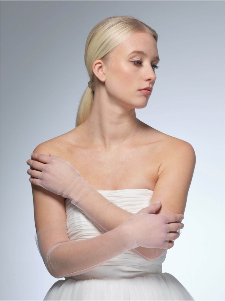 Élevez votre look de mariée avec les gants de mariage de la Collection Essentielle de Poirier. Confectionnés en tulle ivoire doux, ces mitaines intemporelles sans doigts ajoutent une touche d'élégance à votre tenue de mariage, s'harmonisant parfaitement avec une variété de robes. Avec une longueur luxueuse de 54 cm (21,2 pouces), les gants Poirier GL-76006 subliment votre ensemble pour ce jour spécial, vous faisant sentir comme une véritable vision de grâce.